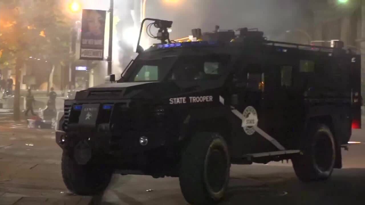 “Let’s make sure we don’t see any more violence tonight, and let’s make sure that we find ways of expressing ourselves moving forward where your point and other people’s points are made, and hopefully we can not just listen, but we can hear,” Beshear said.