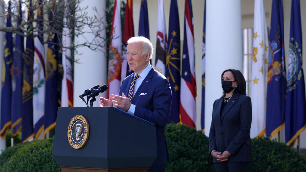 Biden said that within the next 10 days, his administration will clear two important benchmarks: distributing 100 million stimulus payments and administering 100 million vaccine doses since he took office.