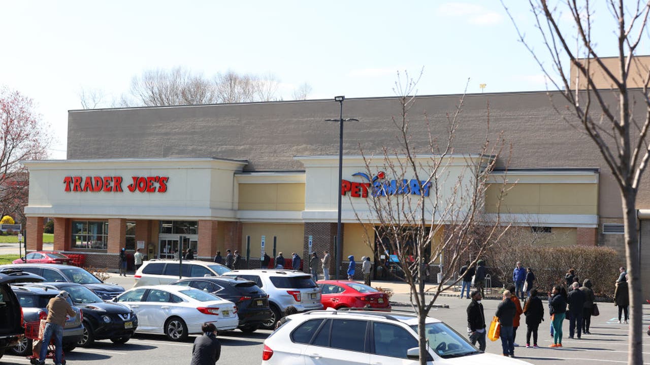 MILLBURN, NJ - MARCH 22: A general view of the line outside of Trader Joes as the store practices social distancing only lets a limited amount of people inside on Millburn Avenue on March 22, 2020 in Millburn, NJ. (Photo by Rich Graessle/Icon Sportsw