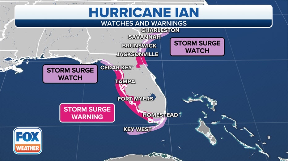 Storm Surge Watches and Warnings are in effect along the path of Hurricane Ian. (FOX Weather)