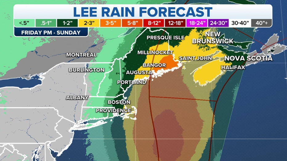 Forecast rain totals from Hurricane Lee. (FOX Weather)