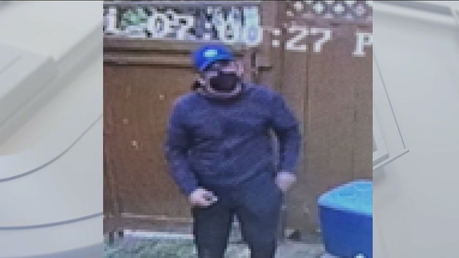 The suspect they are looking for is described as a Hispanic male weighing 200 lbs, is 5'9 ft, wearing dark clothes and a surgical mask and a blue baseball cap with a white logo on it and black Asics sneakers.