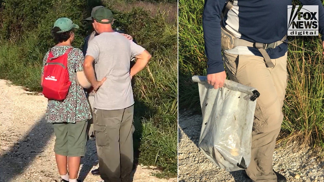 According to FOX News, the Laundries discovered a white bag and a dark-colored object after traveling through a patch of brambles at the edge of the brush at a clearing. They could be seen putting the object into the bag and handing it over to a law enforcement officer.