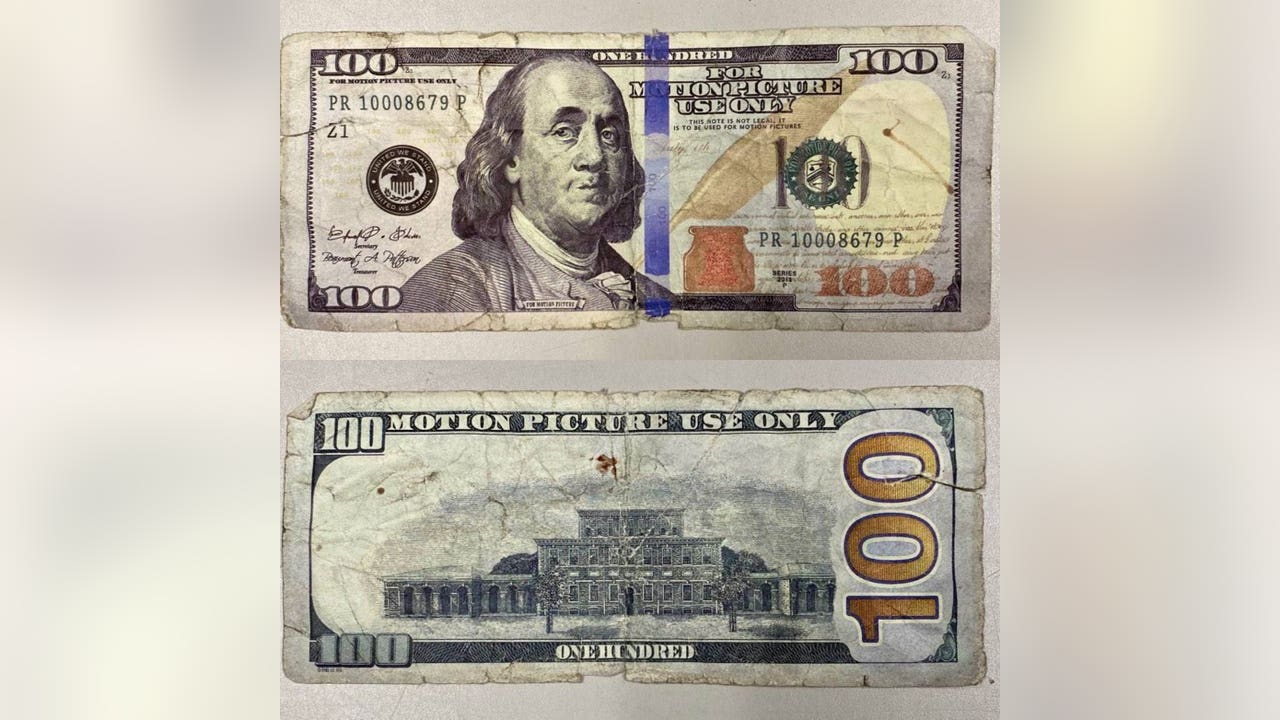 A motion picture prop $100 bill. (South Brunswick Police Department)