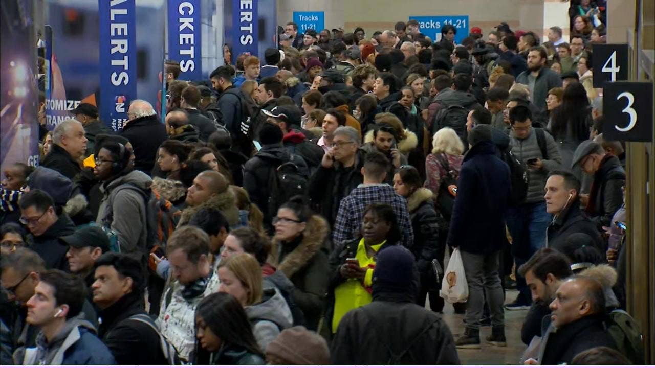 Crowds formed in Penn Station as commuters seeking to go home to New Jersey waited for their trains to be assigned tracks and be given permission to leave the station.