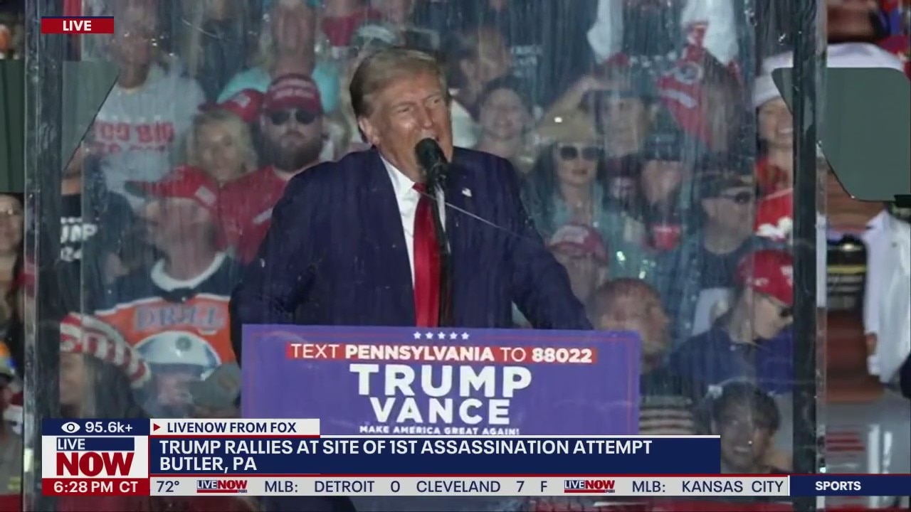 Former President Donald Trump returned to Butler, Pennsylvania on Saturday, giving a campaign speech behind bullet-proof glass. This is Trump's first time rallying in Butler since the first assassination attempt against him back in July. Pennsylvania remains a key swing state in the 2024 election.